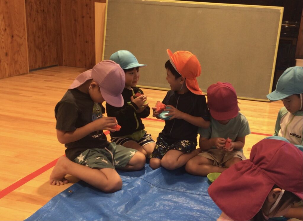 いつもと違う雰囲気で友だちと食べるすいかは特別✨みんなとても美味しそうに食べていました♪