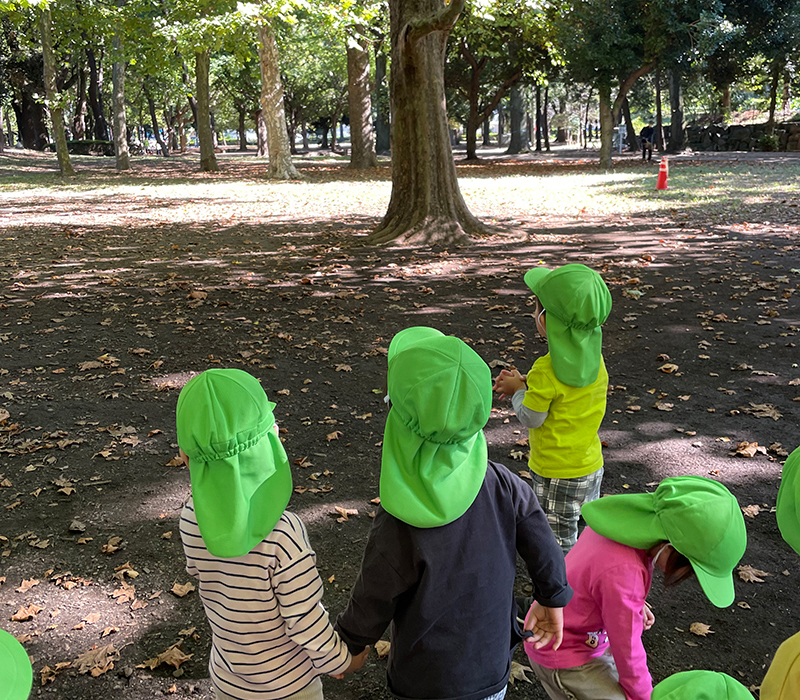 都立蘆花恒春園をはじめ、大小さまざまな公園が近くにあります。積極的にお散歩にでかけ、春はお花見、秋は落ち葉やどんぐり拾いなど季節に応じたあそびをしています。徒歩圏内にある芋畑で収穫体験をし、園庭で焼き芋にするなど、自然の恵みを感じる体験も取り入れています。
