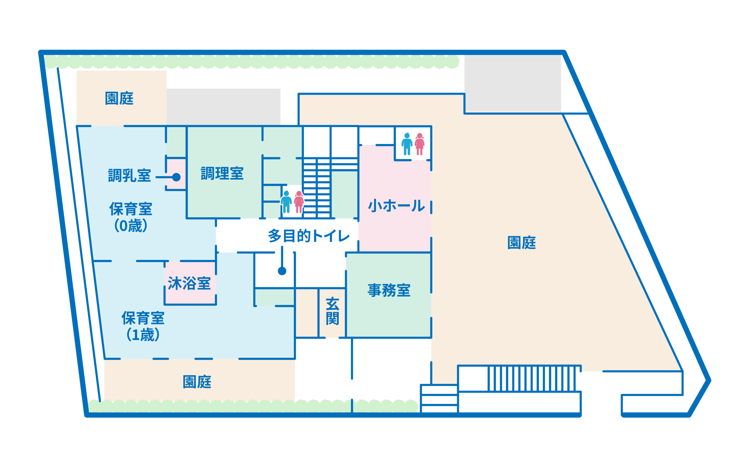0歳児、1歳児それぞれの保育室に隣接した乳児専用の園庭があります。