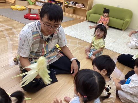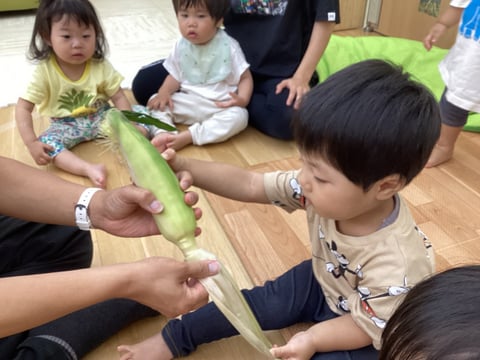 とうもろこしの皮を剥いてみたり、ひげを触ってみたり
