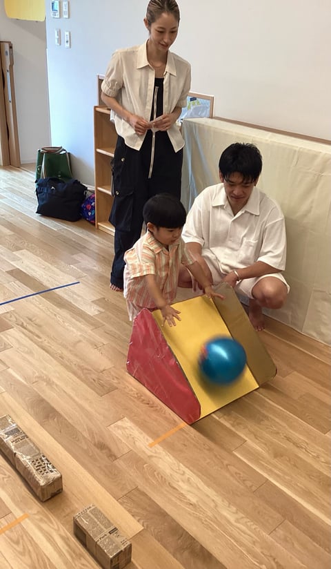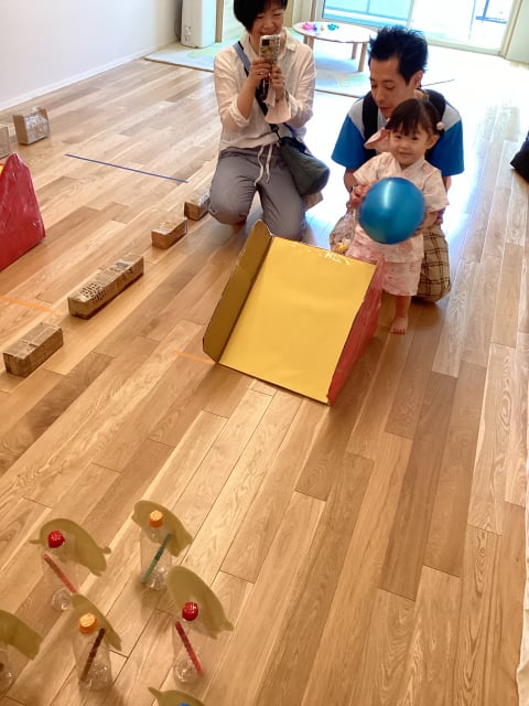 ゲームコーナーで乳児クラスはボーリングを行いました!