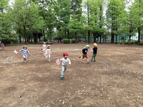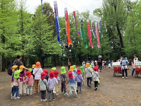 幼児クラスで羽根木公園にこいのぼり探しに